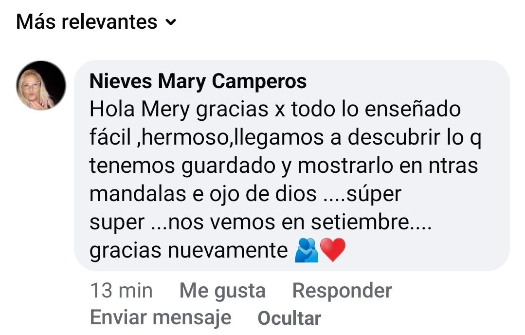 Tiempo despúes llegado de un viaje tranformador en Mexico llegaron a mi, los Madalas Tejidos Ojos de Dios y desde el 2010 me encuentro expandiendo, compartiendo y dedicada a mi Arte a puro corazón, como timón de éste viaje .....la historia es larga...mejor te la cuento poco a poco!